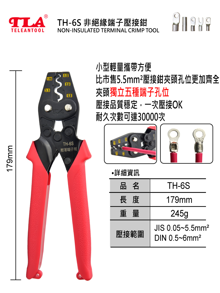 比市售5.5mm²壓接鉗夾頭孔位更加齊全